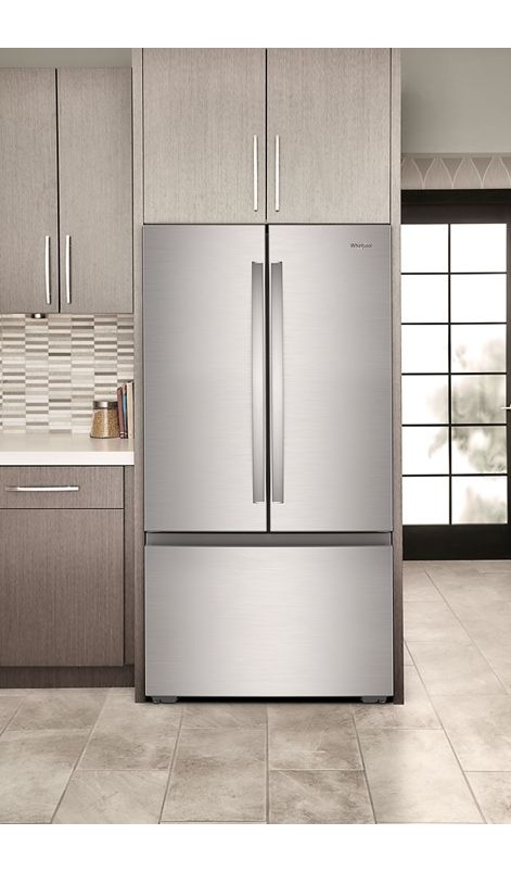 Maximize organization and minimize clutter with 5 organizational zones in this large capacity Whirlpool® True Counter Depth French Door Refrigerator. Get filtered water at the push of a button with a hidden Interior Filtered Water Dispenser. Keep everything in sight with Panoramic LED Lighting and shift between temperature settings and store wine, deli items, meat and more with Flexible Temperature Drawer.